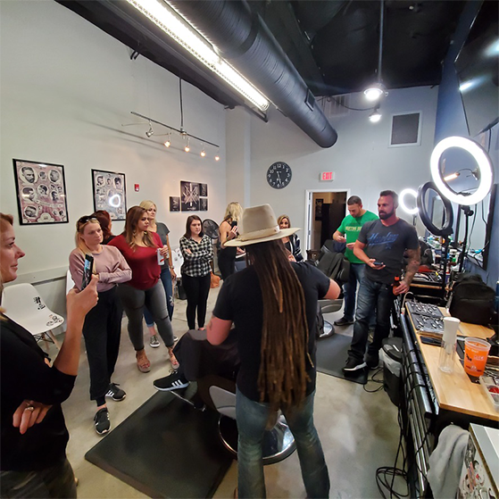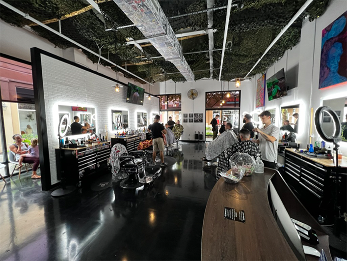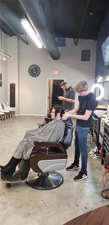 Two years later, we experienced a meteoric rise to the top, only to face the challenges posed by Covid that threatened to derail all the progress the Trust Thy Barber family had made. By this point, we had expanded from two barbers to three, four, five, and even six! We had outgrown our original space and knew it was time to expand once more. As fortune would have it, a photography studio next door was struggling financially due to the pandemic. The owners were eager to exit their lease but couldn’t afford to break it. We collaborated with Market Common to take over the lease, creating a win-win situation: we gained a larger space, and the photography studio was able to end their lease and start anew in a smaller location.