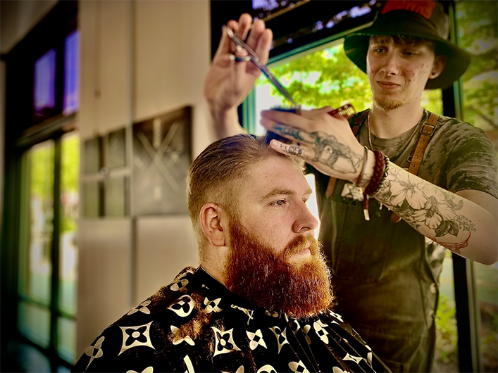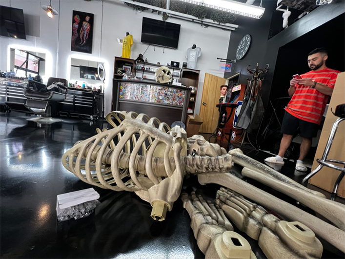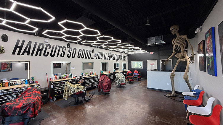 A 12′ tall skeleton named Shamus as a mascot? Trust Thy Barber definitely marches to the beat of its own drummer!