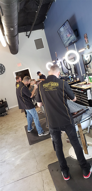 With the pandemic shut downs over and a new lease in hand, Trust Thy Barber began building out the new location. With room for 8 chairs, we finally had enough space to breath and even grow!